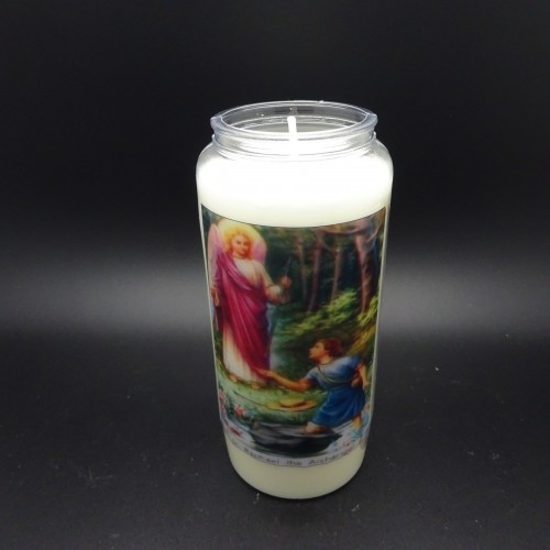 Noveenkaars 6 dagen brander. MET AFBEELDING ENGELEN afmeting: 18 X 6,7 CM Al onze noveenkaarsen zijn vervaardigd uit 100% plantaardige oliën er zijn geen chemische toevoegingen gedaan. De kaarsen branden netjes en blaken niet. En zijn leverbaar in 3 , 6 en 9 dagen brander